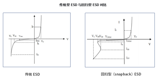 不同于传统的钳位型TVS二极管,回扫型ESD器件拥有更低的动态电阻和更低的钳位电压。其工作原理是:在遭遇高压ESD脉冲时,它能迅速从高阻态“击穿”进入低阻态,像一道快速打开的泄洪闸,将瞬间大电流高效旁路至地,并在电压下降后迅速恢复。这种“快速响应、低压保护”的特性,对于工作电压本身就很低(如3.3V或5V)的高速数据线(如HDMI、USB)来说至关重要,能最大程度地确保后级精密芯片不被过压损坏。