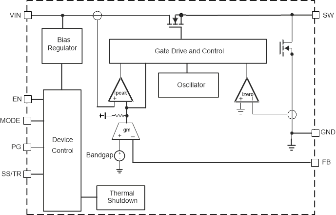 | Features | Enable, Forced PWM, Frequency synchronization, Light load efficiency, Output discharge, Over Current Protection, Power good, Pre-Bias Start-Up, Soft Start Adjustable, Synchronous Rectification, Tracking, UVLO adjustable |
