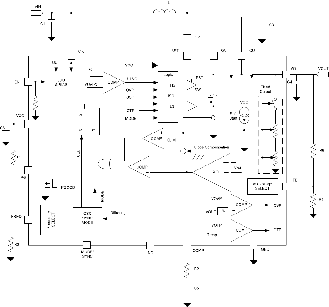 | Features | Enable, Frequency synchronization, Light Load Efficiency, Load Disconnect, Power good, Spread Spectrum, Synchronous Rectification, UVLO Fixed |