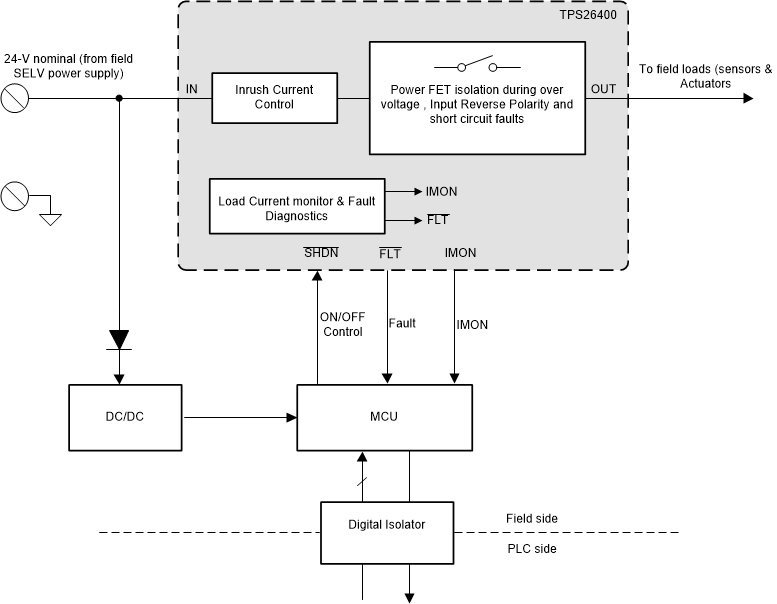 | Features | Current monitoring, Fault output, Reverse current blocking always, Reverse polarity protection |
