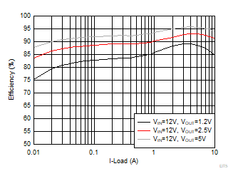 可使用 MODE 引脚来设置 Eco-mode™ 或无声™ (OOA) 模式,以实现轻负载运行以及 500kHz 或 800kHz 的开关频率。Eco-mode™ 可在轻负载运行期间维持高效率。OOA 模式可将开关频率保持在可闻频率以上,同时将对效率的影响降至最低。