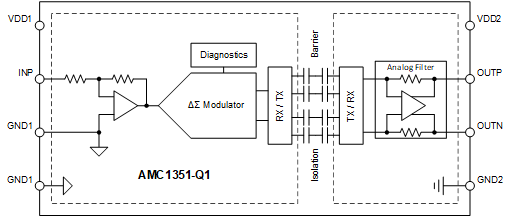 AMC1351-Q1 是一款隔离式精密放大器,此放大器的输出与输入电路由抗电磁干扰性能极强的隔离栅隔开。该隔离栅经认证可提供高达 5kVRMS 的增强型电隔离,符合 VDE V 0884-11 和 UL1577 标准,并且可支持最高 1.5kVRMS 的工作电压。
