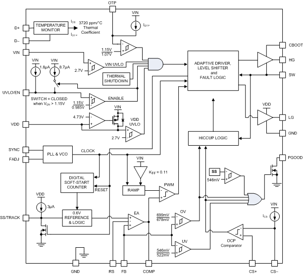 | Features | Enable, Frequency synchronization, Power good, Pre-Bias Start-Up, Remote Sense, Synchronous Rectification, Tracking |