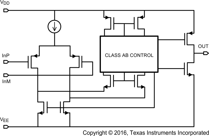 The patented class AB turnaround stage significantly reduces the noise at higher frequencies, power consumption, and offset voltage. The PMOS input stage provides the user with ultra-low input bias current of 20 fA (typical) and high input impedance.
