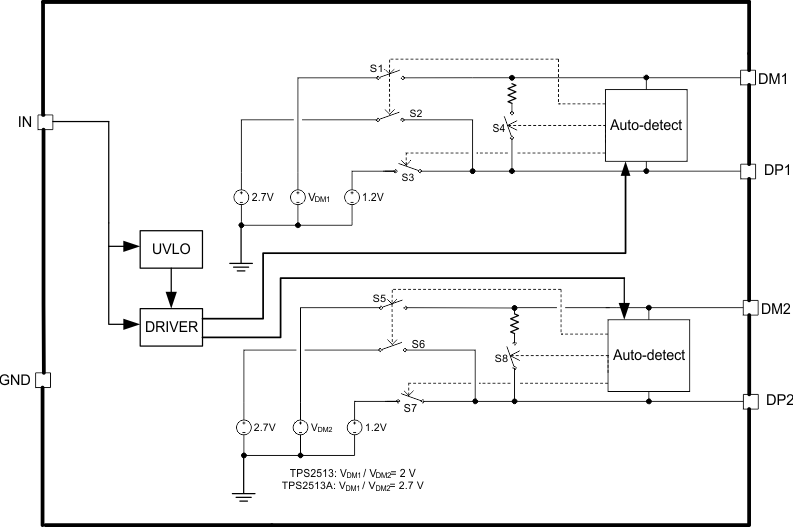 TPS2513 和 TPS2514 是 USB 专用充电端口 (DCP) 控制器。 一个自动检测特性监控 USB 数据线路电压,并且自动在数据线路上提供正确的电气特征,来在下列专用充电系统配置中为兼容器件充电:
