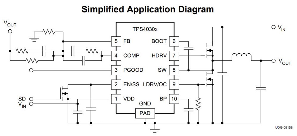 TPS4030x 具有多种用户可编程功能,包括软启动、过流保护 (OCP) 电平以及环路补偿。