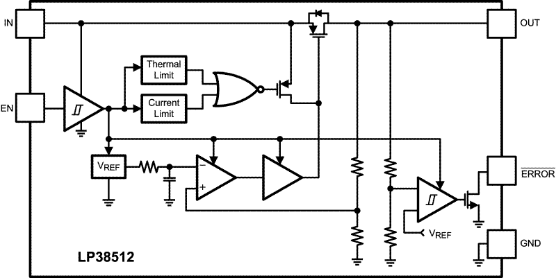 The LP38512-1.8 Fast-Transient Response Low-Dropout Voltage Regulator offers the highest-performance in meeting AC and DC accuracy requirements for powering Digital Cores. The LP38512-1.8 uses a proprietary control loop that enables extremely fast response to change in line conditions and load demands. Output Voltage DC accuracy is specified at 2.5% over line, load and full temperature range from -40°C to +125°C. The LP38512-1.8 is designed for inputs from the 2.5V, 3.3V, and 5.0V rail, is stable with 10 μF ceramic capacitors, and has a fixed 1.8V output. An Error Flag feature monitors the output voltage and notifies the system processor when the output voltage falls more than 15% below the nominal value. The LP38512-1.8 provides excellent transient performance to meet the demand of high performance digital core ASICs, DSPs, and FPGAs found in highly-intensive applications such as servers, routers/switches, and base stations.