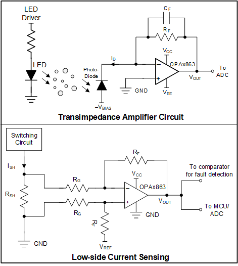 OPAx863 包括过载功率限制功能,可限制输出饱和时 I Q 的增加,从而避免电池供电的功率敏感型系统中出现过度功率耗散。输出级具有短路保护功能,使得此类器件可适应恶劣的环境。