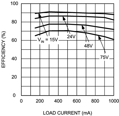 The LM5010 step-down switching regulator features all the functions needed to implement a low-cost, efficient, buck bias regulator capable of supplying in excess of 1-A load current. This high-voltage regulator contains an N-Channel Buck Switch, and is available in thermally enhanced 10-pin WSON and 14-pin HTSSOP packages. The hysteretic regulation scheme requires no loop compensation, resulting in fast load transient response, and simplifies circuit implementation. The operating frequency remains constant with line and load variations due to the inverse relationship between the input voltage and the ON-time. The valley current limit detection is set at 1.25 A. Additional features include: VCC undervoltage lockout, thermal shutdown, gate drive undervoltage lockout, and maximum duty cycle limiter.