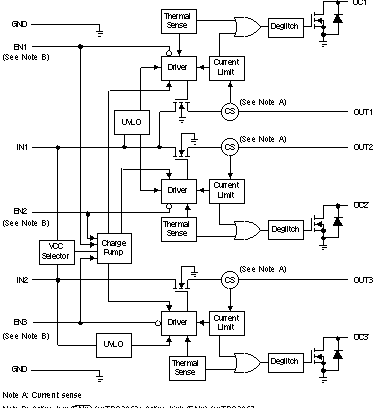 TPS206x 配电开关适用于可能具有高容性负载和发生短路的应用。这个器件组装有一个用于配电系统的 70mΩ N-通道 MOSFET 电源开关。此类系统要求在单一封装内具有多个电源开关。每个开关由一个逻辑使能输入控制。栅极驱动由一个内部电荷泵提供,此电荷泵设计用于控制电源开关上升时间和下降时间以大大减少切换期间的电流涌入。电荷泵无需外部组件并可在低至 2.7V 的电源电压下工作。