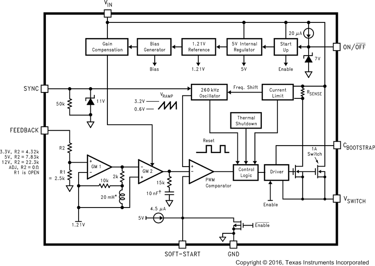 The LM2672 series of regulators are monolithic integrated DC-DC converter built with a LMDMOS process. These regulators provide all the active functions for a step-down (buck) switching regulator, capable of driving a 1-A load current with excellent line and load regulation. These devices are available in fixed output voltages of 3.3 V, 5 V, 12 V, and an adjustable output version.