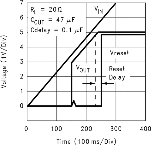 The LM9070 is a 5V, 3% accurate, 250 mA low-dropout voltage regulator. The regulator features an active low delayed reset output flag which can be used to reset a microprocessor system on turn-ON and in the event that the regulator output falls out of regulation for any reason. An external capacitor programs a delay time interval before the reset output can return high.