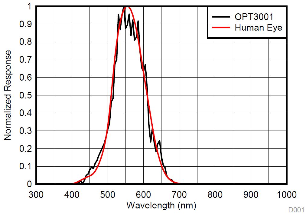 OPT3001 传感器用于测量可见光的密度。传感器的光谱响应与人眼的视觉响应紧密匹配,其中具有很高的红外线阻隔。