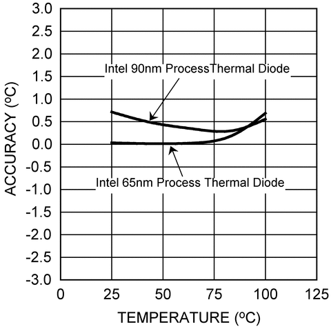 The LM95241 is a precision dual remote diode temperature sensor (RDTS) that uses TI's TruTherm technology. The 2-wire serial interface of the LM95241 is compatible with SMBus 2.0. The LM95241 can sense three temperature zones, it can measure the temperature of its own die as well as two diode connected transistors. The LM95241 includes digital filtering and an advanced input stage that includes analog filtering and TruTherm technology that reduces processor-to-processor non-ideality spread. The diode connected transistors can be a “thermal diode” as found in Intel and AMD processors or can simply be a diode connected MMBT3904 transistor. TruTherm technology allows accurate measurement of “thermal diodes” found on small geometry processes such as 90nm and 65nm. The LM95241 supports user selectable thermal diode non-ideality of either Intel processor on 90nm or 65nm process or 2N3904.