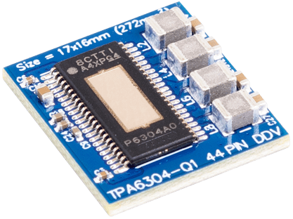 TPA6304-Q1 D 类音频放大器的设计十分出色,可适用于入门级汽车音响主机,以作为系统设计的一部分提供模拟音频输入信号。与传统的线性放大器解决方案相比,D 类拓扑技术显著提高了器件效率。