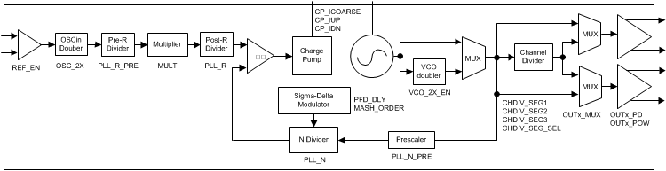 | Features | Integer-boundary spurs (IBS) removal, Integrated VCO, Phase adjustment, Wideband |