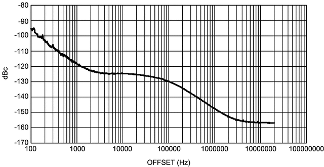 The cascaded architecture consists of two high-performance phase-locked loops (PLL), a low-noise crystal oscillator circuit, and a high-performance voltage controlled oscillator (VCO). The first PLL (PLL1) provides a low-noise jitter cleaner function while the second PLL (PLL2) performs the clock generation. PLL1 can be configured to either work with an external VCXO module or use the integrated crystal oscillator with an external crystal and a varactor diode. When used with a very narrow loop bandwidth, PLL1 uses the superior close-in phase noise (offsets below 50 kHz) of the VCXO module or the crystal to clean the input clock. The output of PLL1 is used as the clean input reference to PLL2 where it locks the integrated VCO. The loop bandwidth of PLL2 can be optimized to clean the far-out phase noise (offsets above 50 kHz) where the integrated VCO outperforms the VCXO module or crystal used in PLL1.