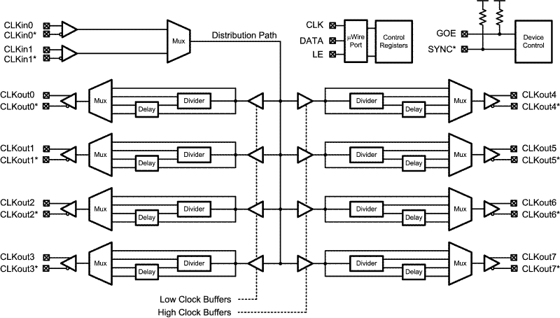 The LMK01000 family provides an easy way to divide and distribute high performance clock signals throughout the system. These devices provide best-in-class noise performance and are designed to be pin-to-pin and footprint compatible with LMK03000/LMK02000 family of precision clock conditioners.