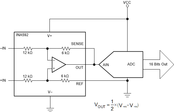 差分放大器为许多常用电路奠定了基石。INA592 提供此电路功能,而无需使用昂贵的精密电阻器网络。