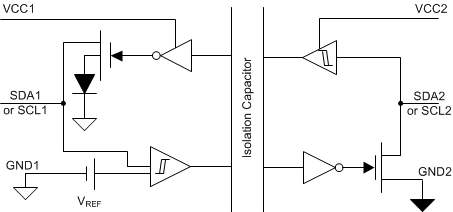 这些器件通过将 1 侧低电平输出电压偏移至高于 1 侧高电平输入电压的方式实现隔离式双向通信,从而避免标准数字隔离器发生内部逻辑锁存。