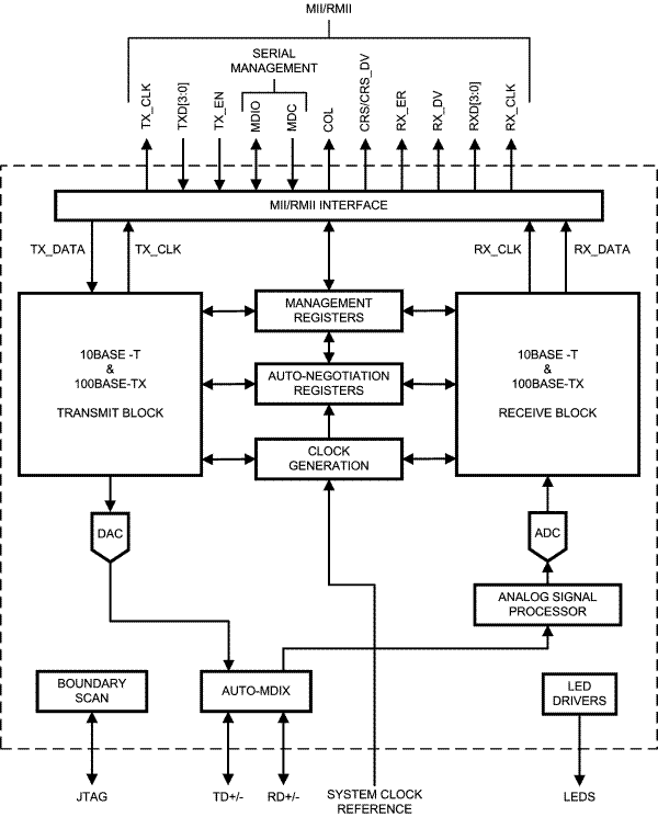 The DP83620 offers innovative diagnostic features unique to Texas Instruments, including dynamic monitoring of link quality during standard operation for fault prediction. These advanced features allow the system designer to implement a fault prediction mechanism to detect and warn of deteriorating and changing link conditions. This single port fast Ethernet transceiver can support both copper and fiber media. The DP838620 also provides flexibility by supporting both MII and RMII interfaces.