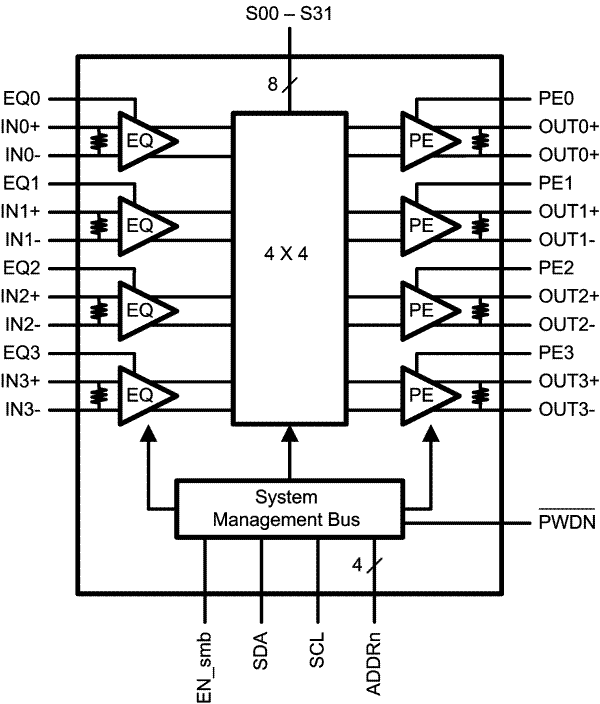 - Pin (Two Levels) and SMBus (Four Levels) Selectable Pre-Emphasis and Equalization Eliminate ISI Jitter