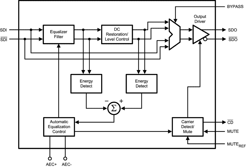 The LMH0074 implements DC restoration to correctly handle pathological data conditions. The equalizer may be driven in either a single ended or differential configuration.