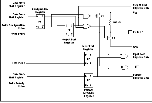INT can be connected to the interrupt input of a microcontroller. By sending an interrupt signal on this line, the remote I/O can inform the microcontroller if there is incoming data on its ports without having to communicate via the I2C bus. Thus, the PCA9554 can remain a simple slave device.