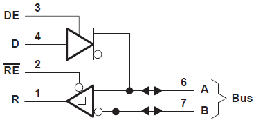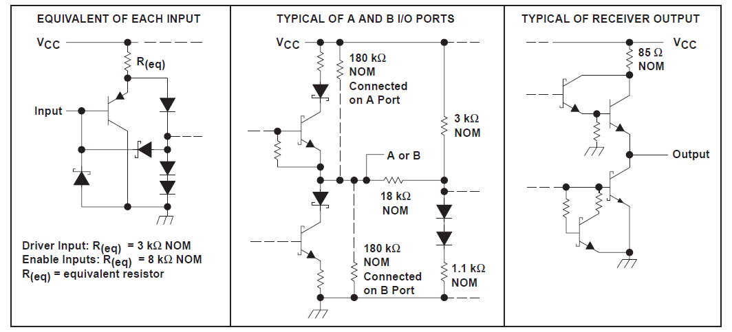 (1)这些器件符合或超出 TIA/EIA-485-A 的要求,但发生器争用测试(第3.4.2 段)和发生器电流限制(第3.4.3 段)除外。对于 SN75ALS176、SN75ALS176A 和 SN75ALS176B,所施加的测试电压范围为 –6V 至 8V;对于 SN65ALS180,所施加的测试电压范围为 –4V 至 8V。