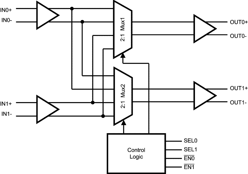 Wide input common mode range allows the switch to accept signals with LVDS, CML and LVPECL levels; the output levels are LVDS. A very small package footprint requires a minimal space on the board while the flow-through pinout allows easy board layout. The 3.3V supply, CMOS process, and LVDS I/O ensure high performance at low power over the entire industrial -40 to +85°C temperature range.