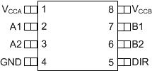 SN74AXC2T45-Q1 器件旨在实现数据总线间的异步通信。根据方向控制输入 (DIR) 上的逻辑电平,该器件将数据从 A 总线传输至 B 总线,或者将数据从 B 总线传输至 A 总线。 SN74AXC2T45-Q1 器件旨在使控制引脚 (DIR) 以 VCCA 为基准。