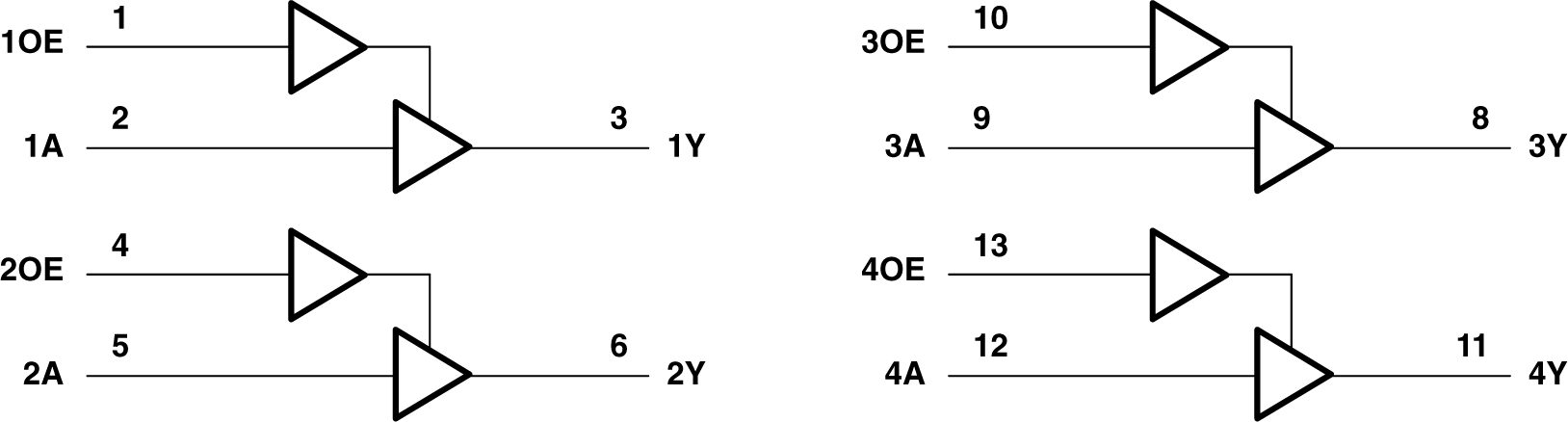 SN74AHCT126-Q1 器件是一款四路总线缓冲门,具有提供三态输出的独立线路驱动器。当每个输出的相关输出使能 (OE) 输入为低电平时,输出被禁用。当 OE 为高电平时,相应的逻辑门会将来自 A 输入的数据传递到 Y 输出。