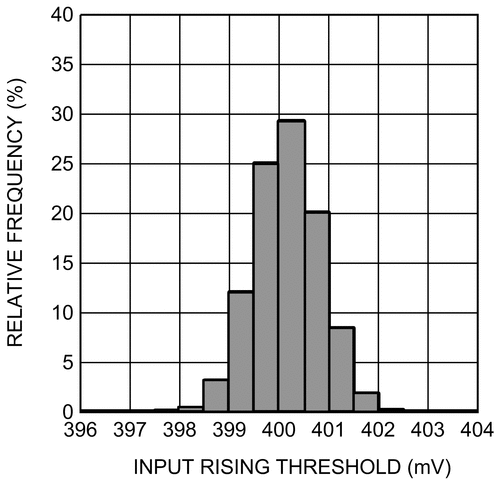 The LMV7231 device is a 1.5% accurate Hex Window Comparator which can be used to monitor power supply voltages or any other analog output, such as an analog temperature sensor or current-sense amplifier. The device uses an internal 400-mV reference for the comparator trip value. The comparator set points can be set through external resistor dividers. The LMV7231 has 6 outputs (CO1 to CO6) that signal an undervoltage or overvoltage event for each power supply input. An output (AO) is also provided to signal when any of the power supply inputs have an overvoltage or undervoltage event. This ability to signal an undervoltage or overvoltage event for the individual power supply inputs, in addition to an output to signal such an event on any of the power supply inputs, adds unparalleled system protection capability.
