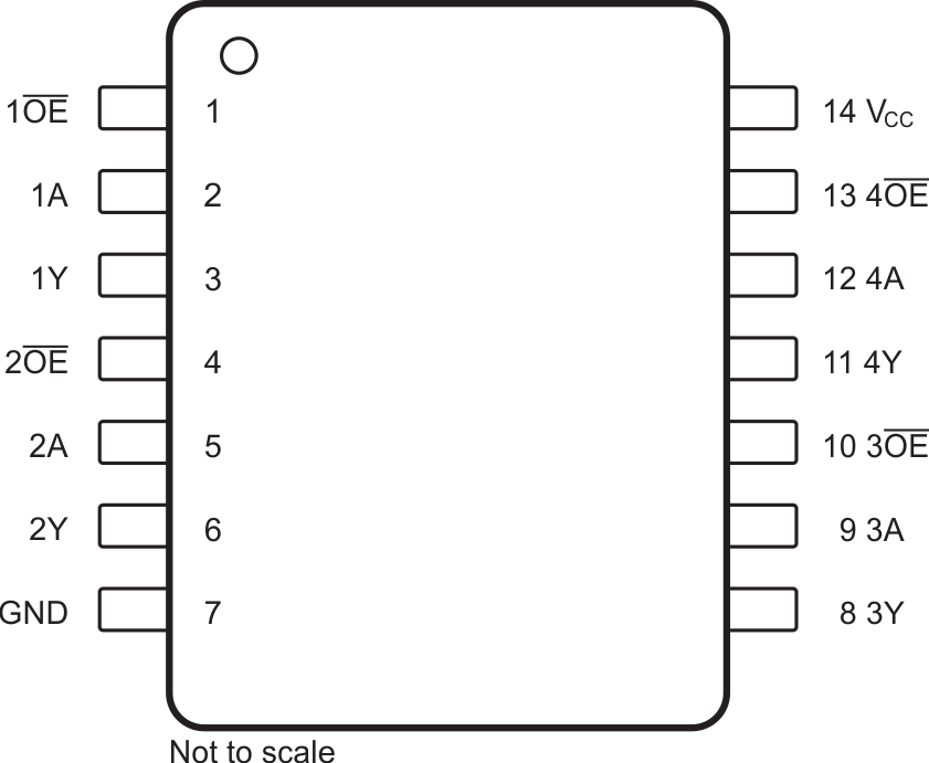 SNx4AHC125 器件是四路总线缓冲门,采用具有三态输出的独立线路驱动器。当每个输出的相关输出使能 ( OE) 输入为高电平时,输出被禁用。当 OE 为低电平时,相应的逻辑门会将来自 A 输入的数据传递到 Y 输出。