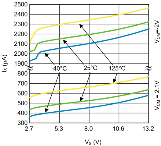 The LMP8640, LMP8640-Q1 and the LMP8640HV are precision current sense amplifiers that detect small differential voltages across a sense resistor in the presence of high input common mode voltages with a supply voltage range from 2.7 V to 12 V.